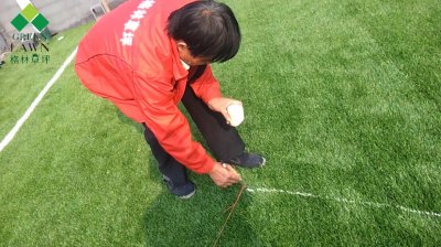 一.人造草坪粘接拼縫鋪裝方法 人造草坪在鋪草前應在基礎上鋪一層土工布,減少草纖維與基層的磨損,達到增長草的壽命目的···